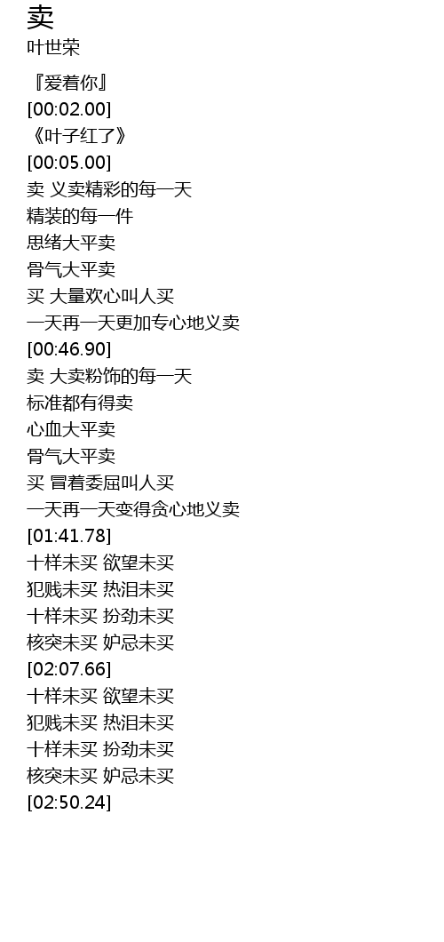 | [01:47.02] | shí yàng wèi mǎi yù wàng wèi mǎi |