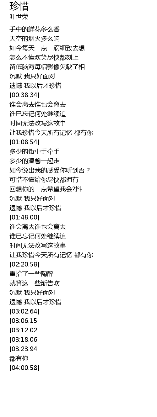 | [03:48.69][03:23.94] | 让我珍惜今天所有记忆 |