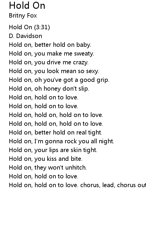 Hold on, hold on to love. chorus, lead, chorus out. |