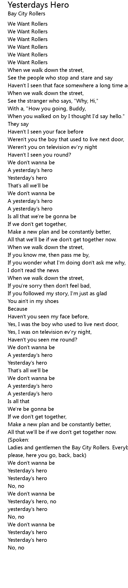 Yesterday's hero, no |