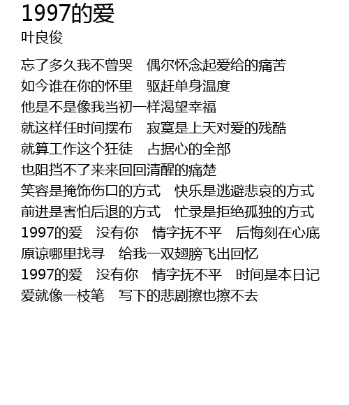 | 1997的爱 没有你 情字抚不平 后悔刻在心底 | |