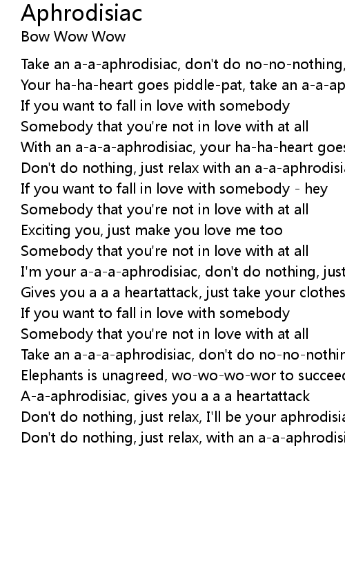 I'm your a-a-a-aphrodisiac, don't do nothing, just relax |