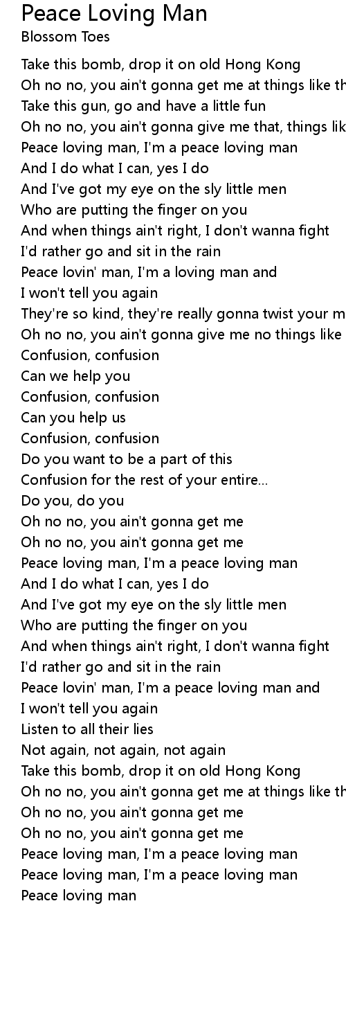 Peace lovin' man, I'm a peace loving man and |