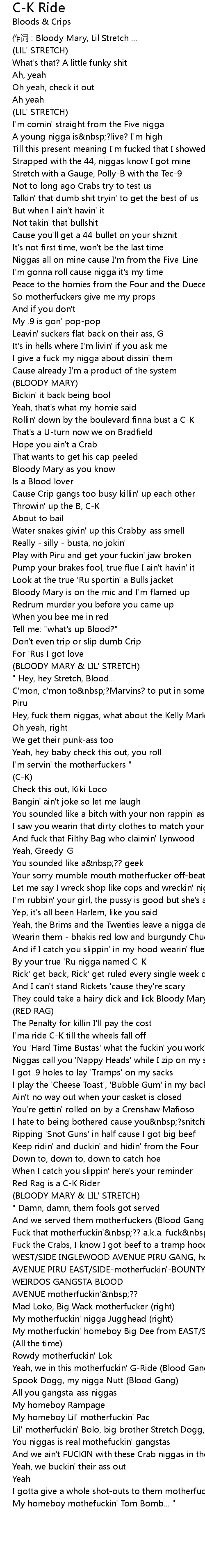 | I gotta give a whole shotouts to them motherfuckin' BOMPTON PIRU niggas | |