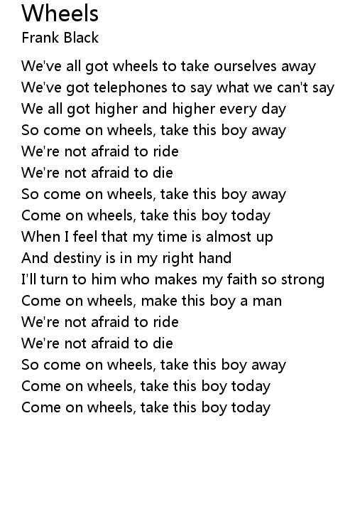 Come on wheels, take this boy today |