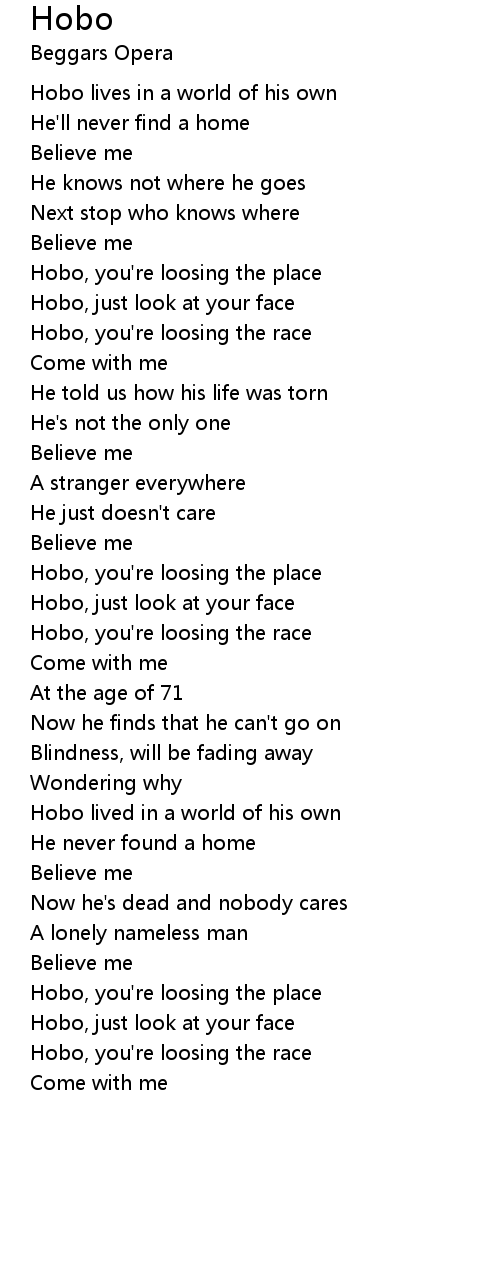 Hobo, you're loosing the place |