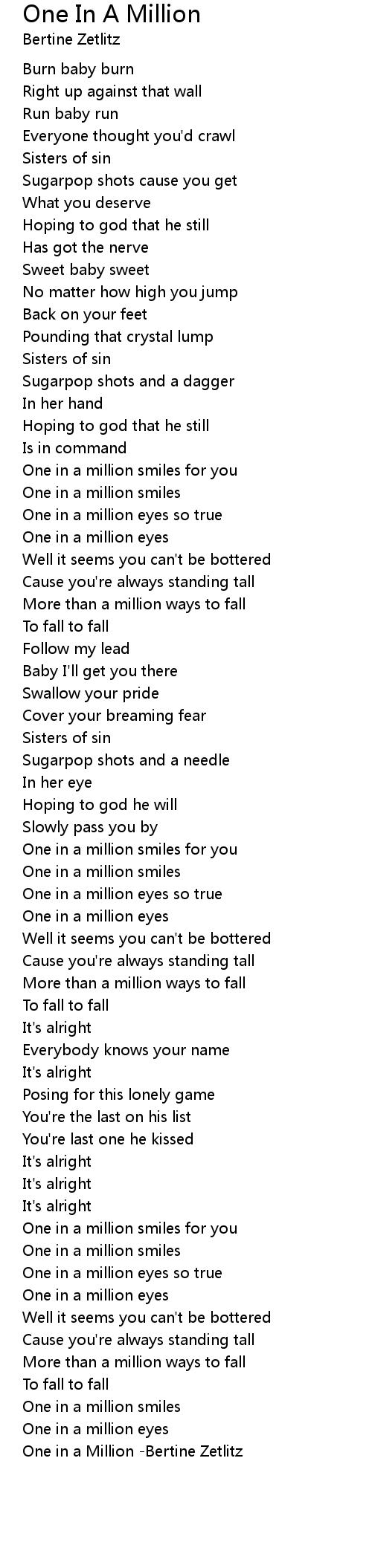 One in a Million -Bertine Zetlitz |