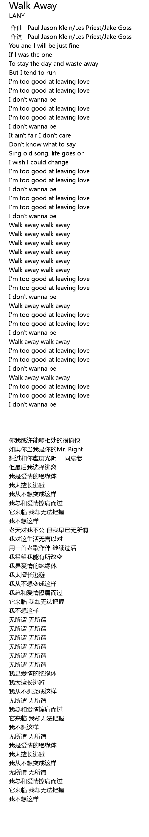 | [02:46.60] | Walk away walk away |