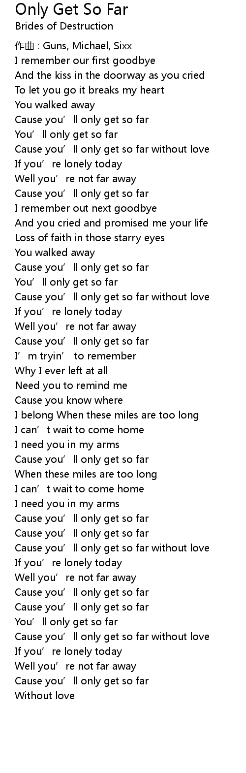 | 歌曲 | Only Get So Far |