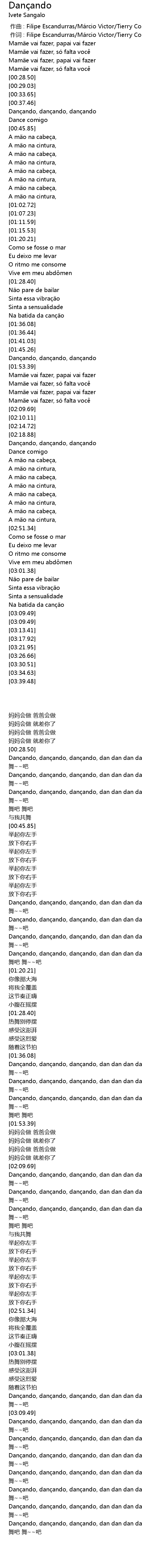 | [03:39.48] | Dançando, dançando, dançando, dan dan dan dan, dançando 舞吧 舞吧 舞~~吧 |