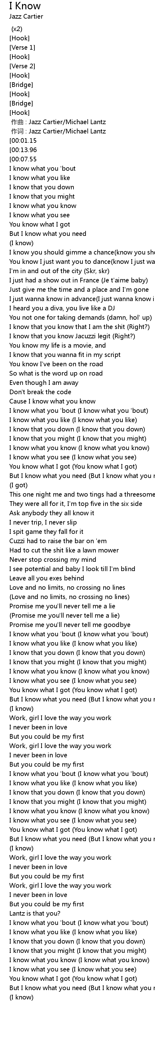 | [01:12.22] | I know what you know I know what you know |