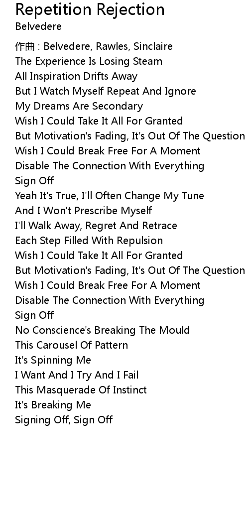 | 歌曲 | Repetition Rejection |