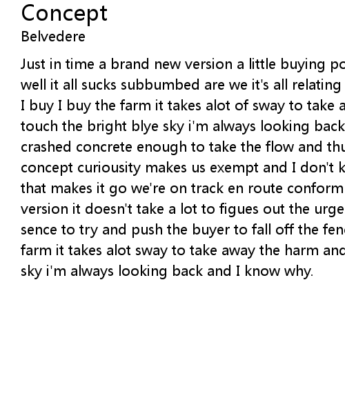 Just in time a brand new version a little buying power and a brand excursion well it all sucks subbumbed are we it's all relating back to a monopoly well if I buy I buy the farm it takes alot of sway to take away the harm and come and touch the bright blye sky i'm always looking back and I know why we're on crashed concrete enough to take the flow and thus extreme we're on crashed concept curiousity makes us exempt and I don't know but I will bute the hand that makes it go we're on track en route conform today just in line to buy the version it doesn't take a lot to figues out the urgency it all makes alot of sence to try and push the buyer to fall off the fence and if I buy I buy the farm it takes alot sway to take away the harm and come and touch the bright blue sky i'm always looking back and I know why. |