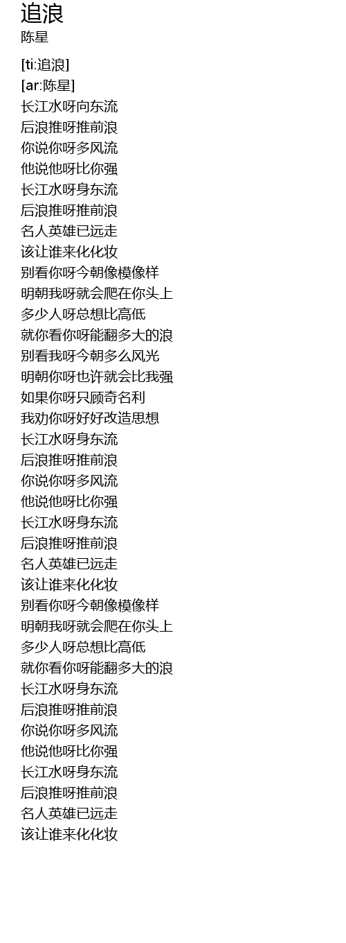 | [00:23.112] | hòu làng tuī ya tuī qián làng |