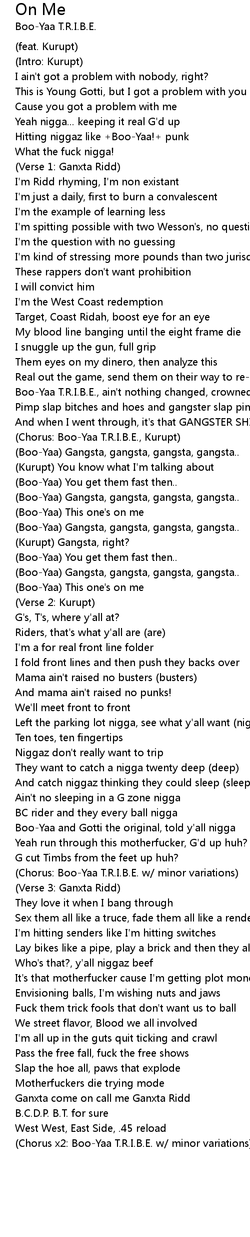 (Chorus x2: Boo-Yaa T.R.I.B.E. w/ minor variations) |