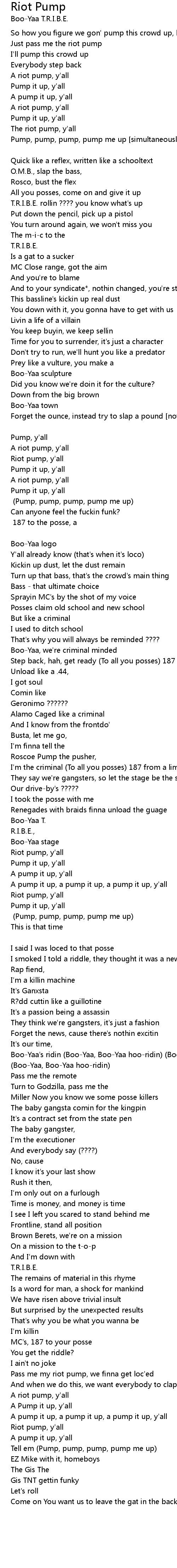 Boo-Yaa's ridin (Boo-Yaa, Boo-Yaa hoo-ridin) (Boo-Yaa, Boo-Yaa hoo-ridin) (Boo-Yaa, Boo-Yaa hoo-ridin) |