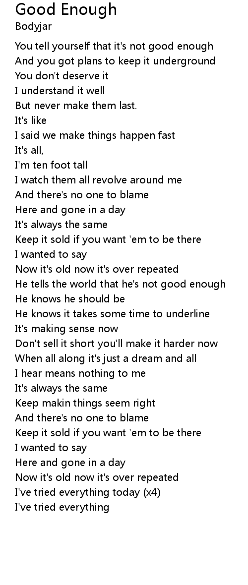 You tell yourself that it's not good enough |