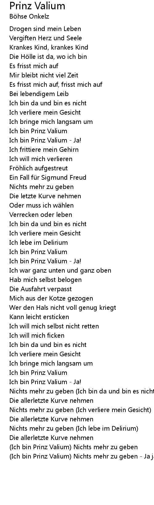 | Ich bin Prinz Valium Nichts mehr zu geben Ja ja! |
