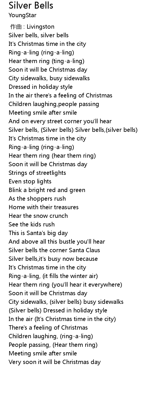 | [02:30.998] | Silver bells Dressed in holiday style |