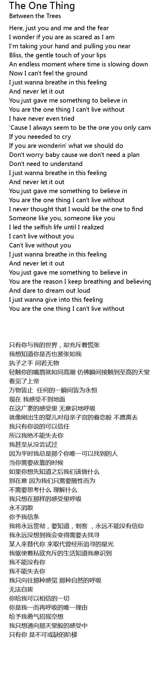 You are the one thing I can't live without |