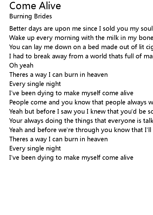I've been dying to make myself come alive |