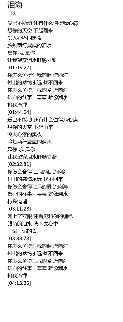 | [03:36.97] | 你怎么舍得让我的泪 流向海 |