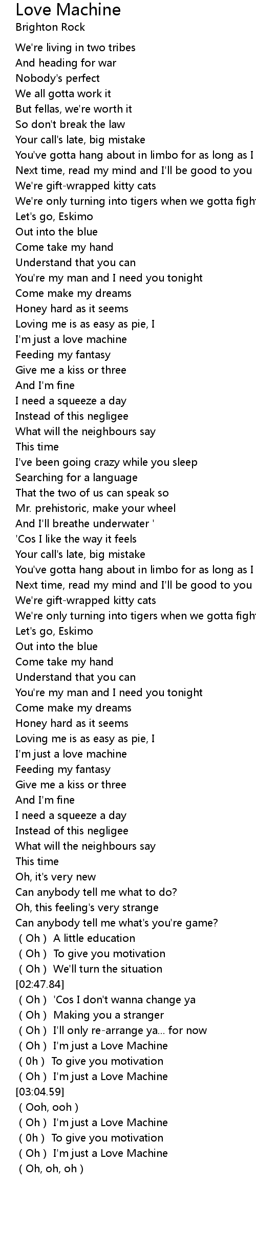 | [03:02.18] | Oh I' m just a Love Machine |