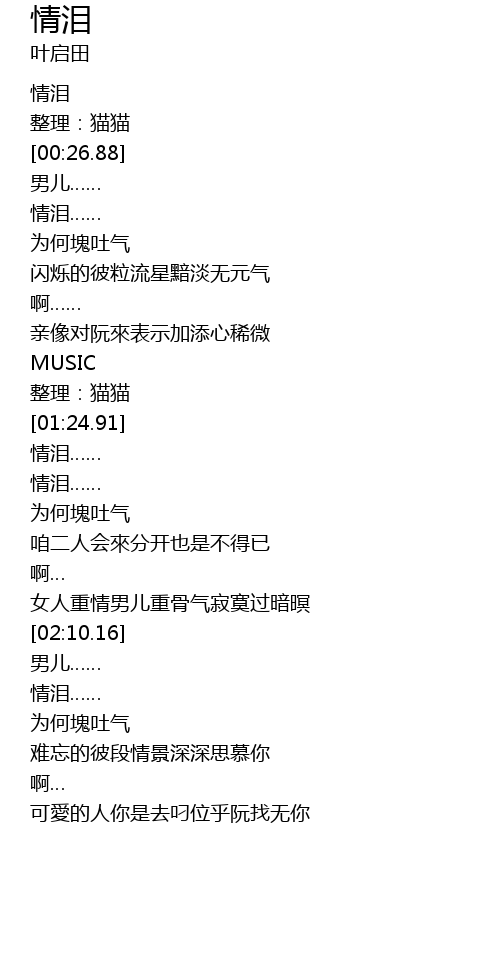 | [02:43.87] | 可愛的人你是去叼位乎阮找无你 |