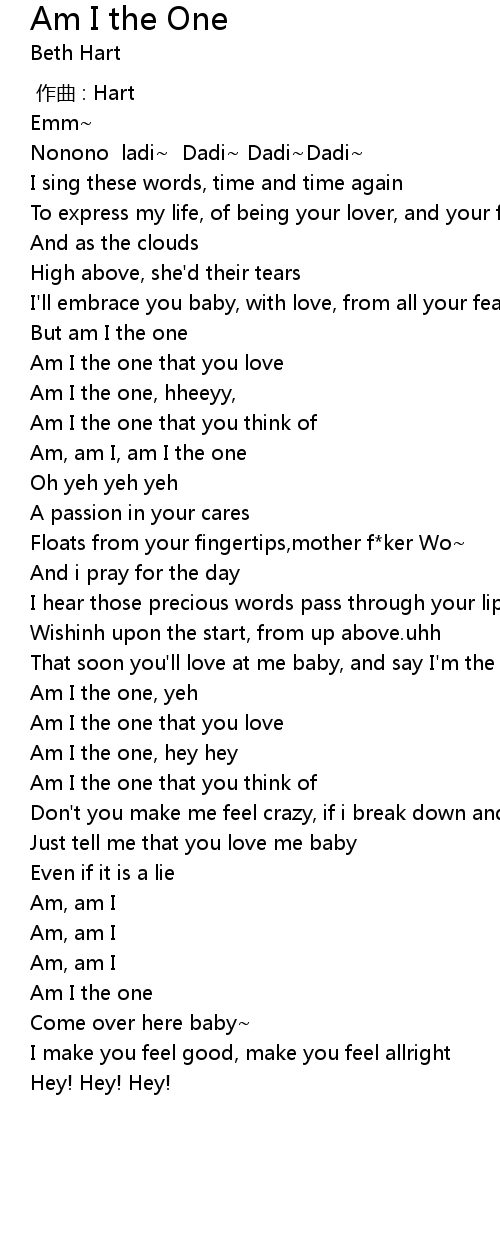 | [03:12.56] | Am I the one, hey hey |