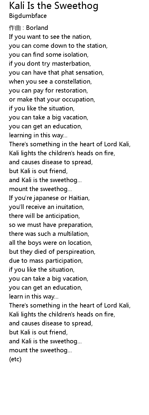 | 歌曲 | Kali Is the Sweethog |