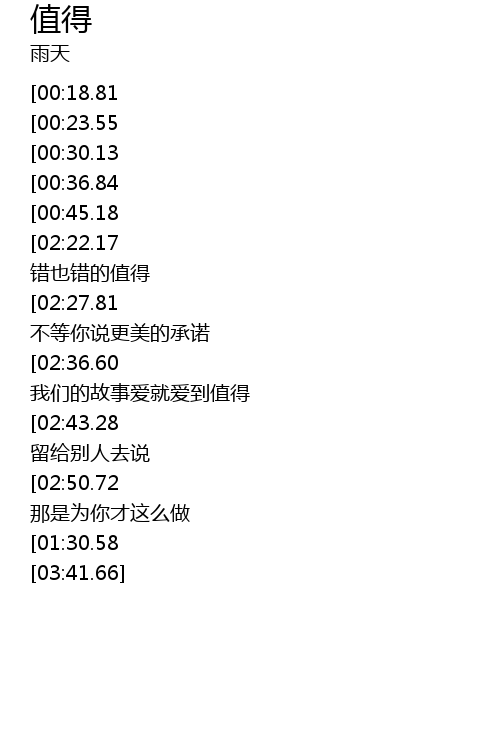 | [03:12.28][02:36.60][01:07.78] | 我可以对自己承诺 我们的故事爱就爱到值得 |