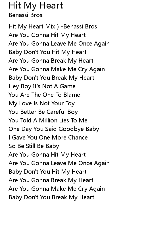 | [01:32.457] | Baby Don't You Hit My Heart |