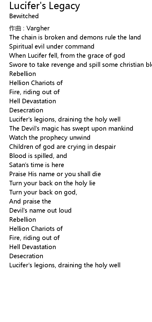 | 歌曲 | Lucifer's Legacy |