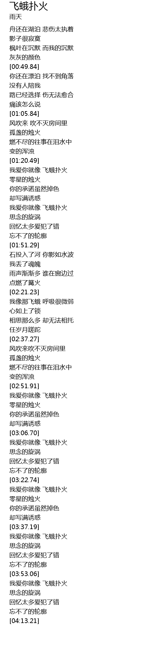 | [03:53.90] | 我爱你就像 飞蛾扑火 |