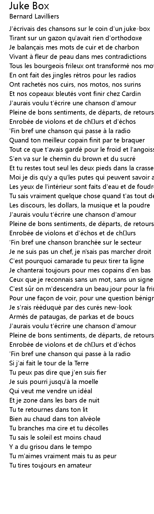 | J'é crivais des chansons sur le coin d' un jukebox | |