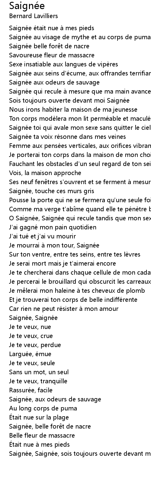 | Saigne e e tait nue a mes pieds | |