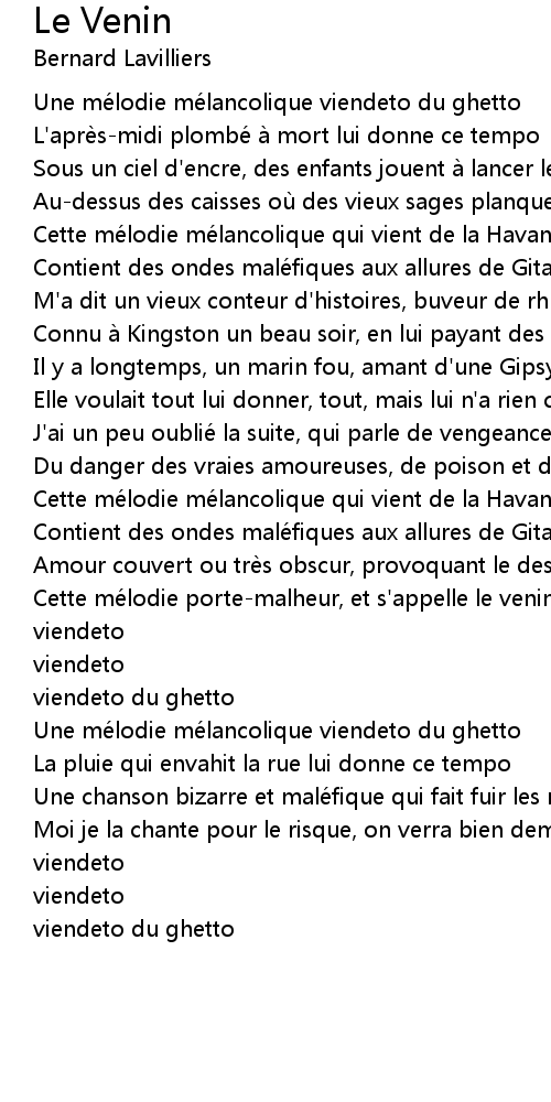 | Cette me lodie portemalheur, et s' appelle le venin | |