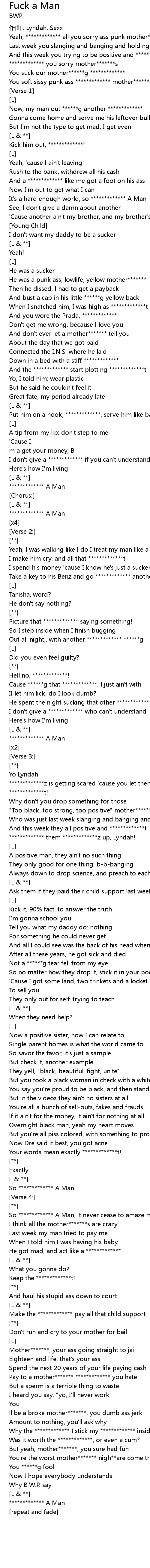 | 歌曲 | Fuck a Man |
