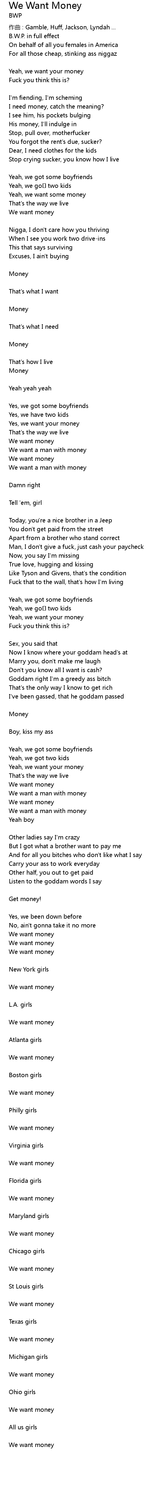 | 歌曲 | We Want Money |