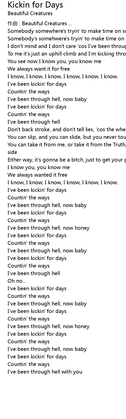 | I' ve been kickin' for days | |