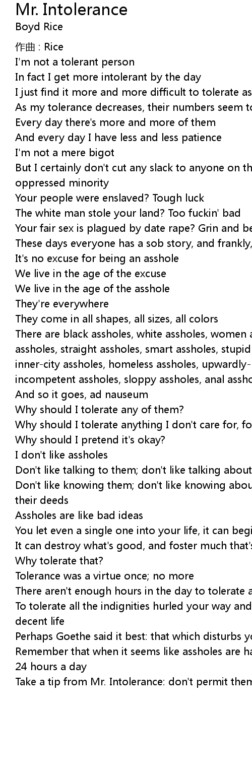 | 歌曲 | Mr. Intolerance |