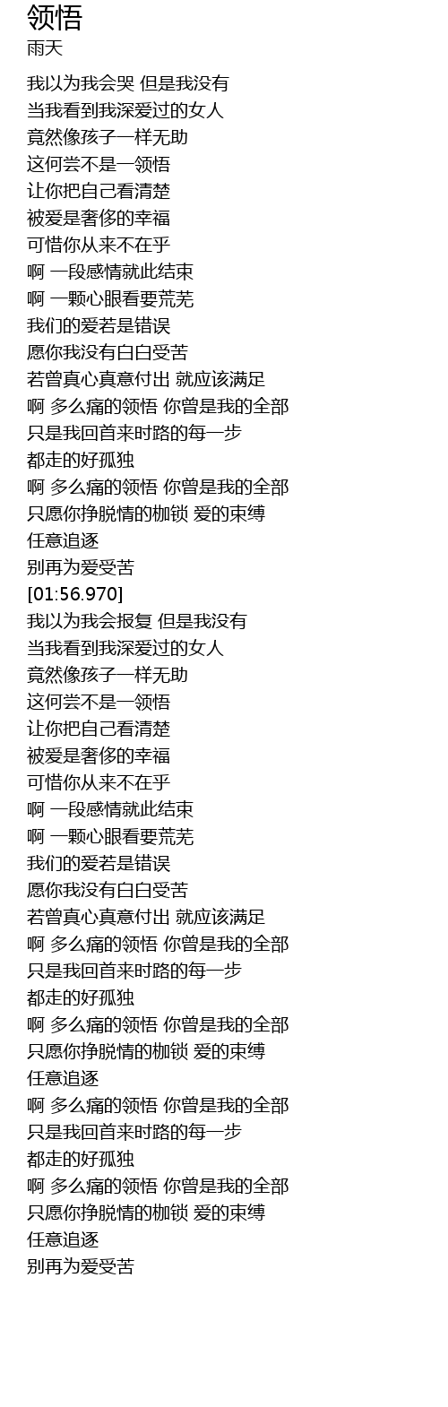 | [01:32.390] | 啊 多么痛的领悟 你曾是我的全部 |