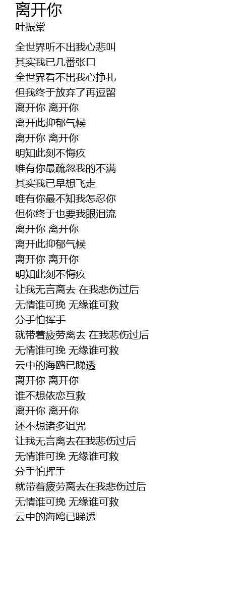 | [00:46.09] | 离开你 离开你 |