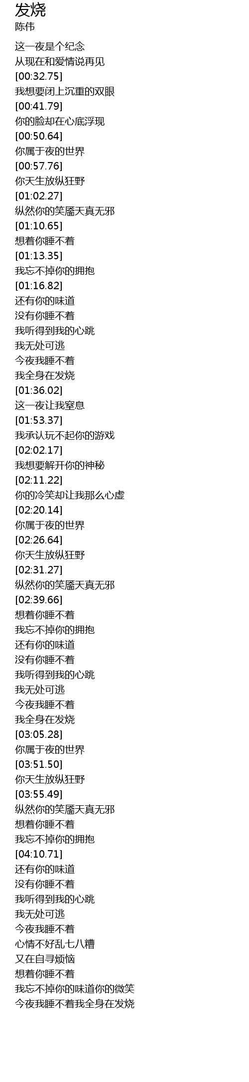 | [03:00.76] | 我全身在发烧 |