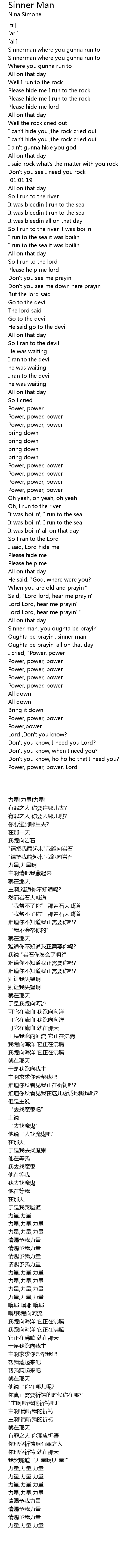 Sinnerman where you gunna run to |