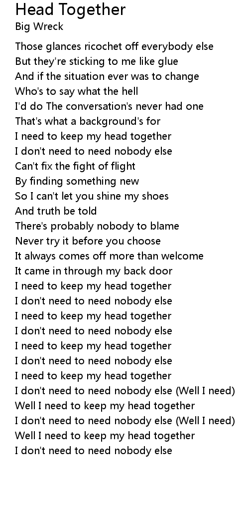 | Well I need to keep my head together | |