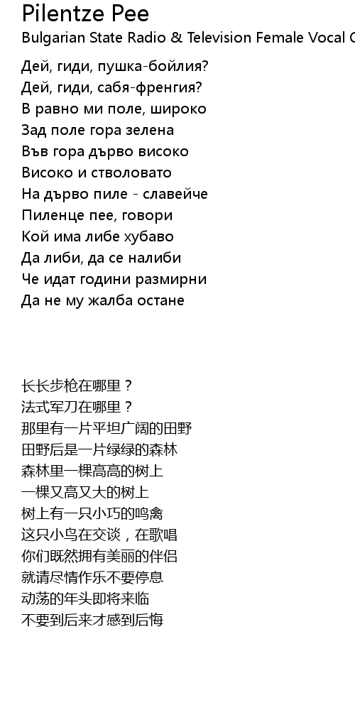 | [01:12.846] | Пиленце пее, говори |