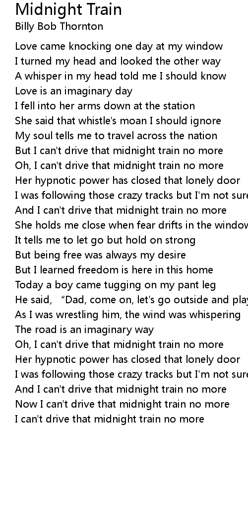 | Oh, I can't drive that midnight train no more | |