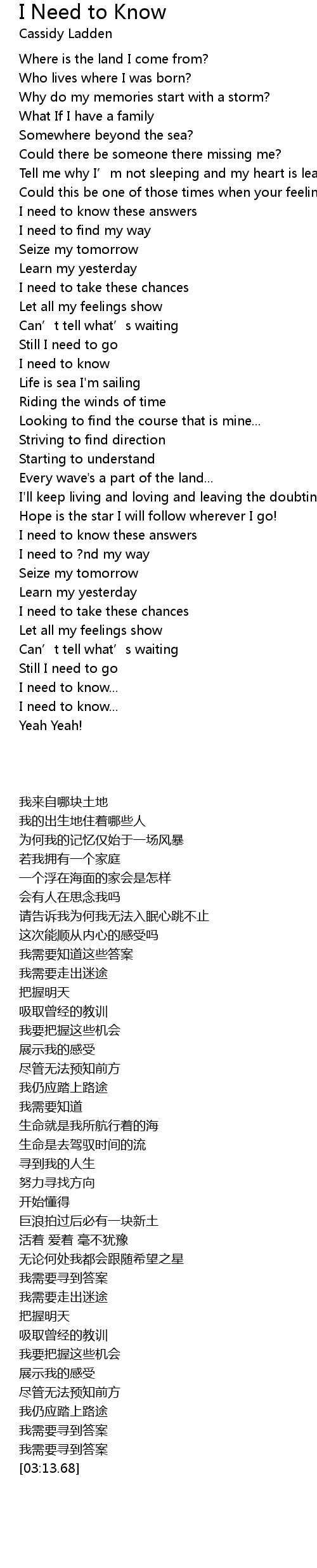 | [01:32.92] | 我需要知道 |
