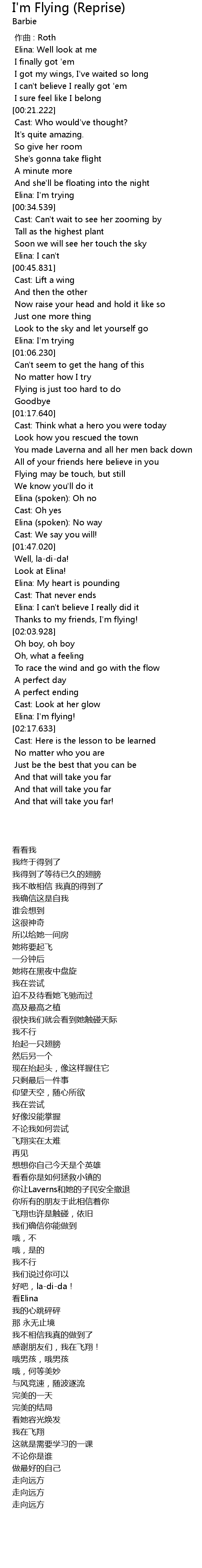 | 歌曲 | I'm Flying (Reprise) |